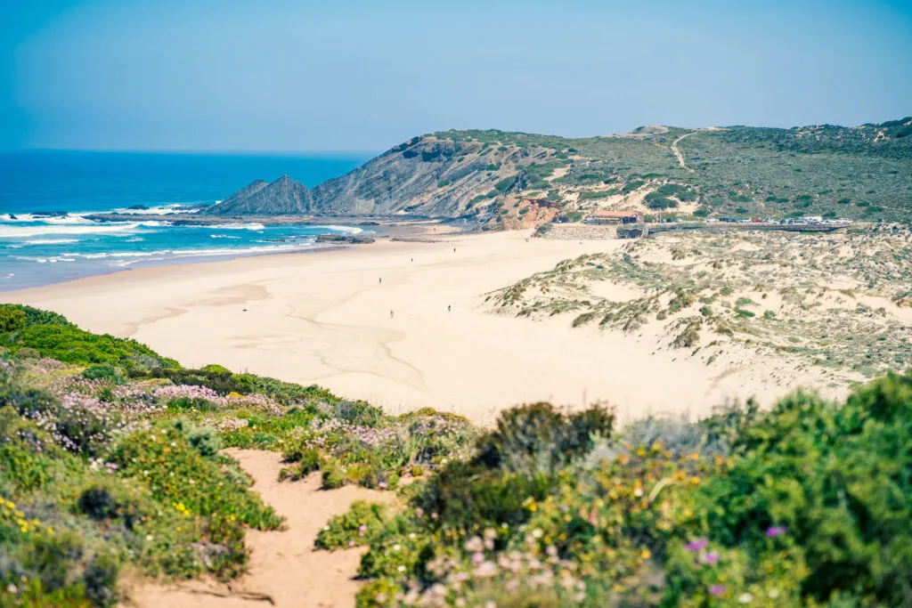 Říká se jí právem jedno ze sedmi přírodních divů Portugalska. Pláž leží v ústí řeky Seixe, cca 4 km od městečka Odeceixe. Samotné městečko za návštěvu rozhodně stojí – malebné, klidné, fotogenické. Stavte se ve městečku na dobrý oběd, věčeři, kávu, procházku. Cokoliv. Bude se vám tady líbit.