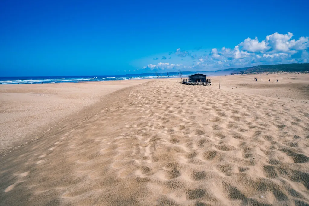 O kousek výš na pobřeží leží ještě edno z těch míst, která si vás omotají kolem prstu. Vila Nova de Milfontes – malebné městečko na ústí řeky Mira – v sobě kombinuje to nejlepší z portugalského pobřeží: autentickou atmosféru rybářské vesnice, příjemný prázdninový vibe, bílé domky s barevnými detaily, spoustu kaváren, restaurací i plážových barů.