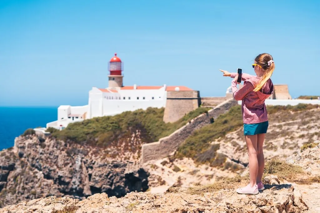 K majáku se dostanete po pohodlné silnici, asi 6 km za městem Sagres. Přímo u parkoviště najdete několik stánků, mezi nimi i ten legendární „Letzte Bratwurst vor Amerika“ – tedy poslední párek v rohlíku před Amerikou. Je to bizarní, ale svým způsobem to k tomu místu sedí.