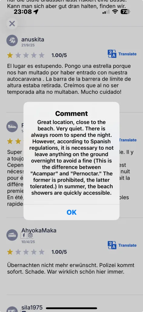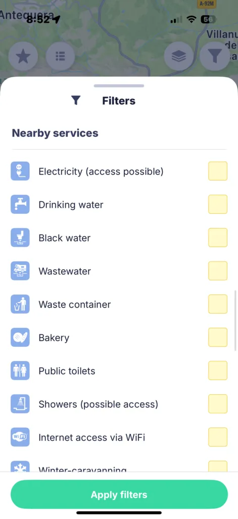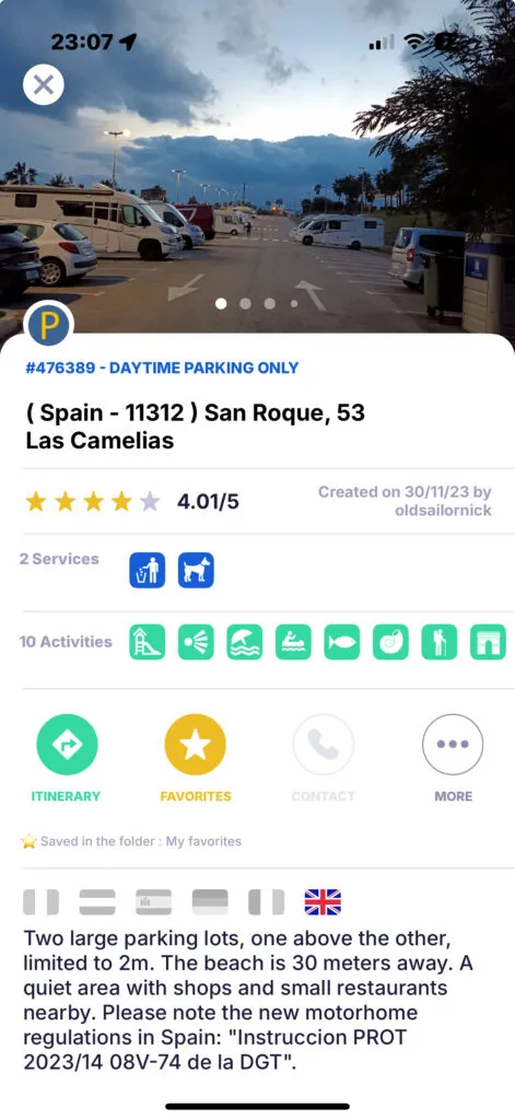 A mezi všemi aplikacemi jedna vede – Park4night. Při cestování obytným autem po Španělsku a Portugalsku si s ní určitě vystačíte a téměř by se dalo říct, že většina z nás už jí dnes považuje za nezbytnou.