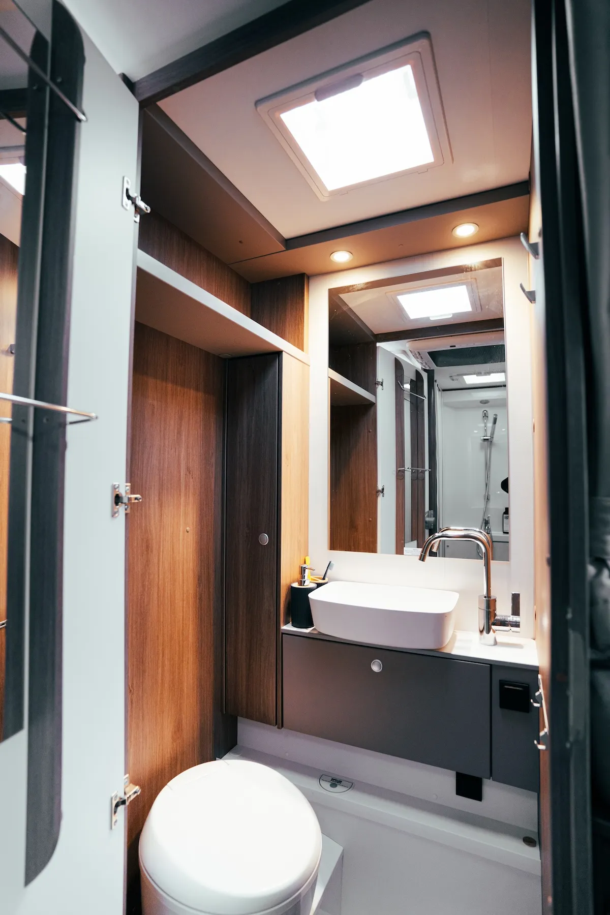 Coral má nezávislé plynové topení Truma Combi 6E, solární panel a invertér – takže vám poskytne naprostou svobodu na cestách. Budete mít vždy a všude dostatek tepla, teplé vody i elektrického proudu (12V i 230V).
