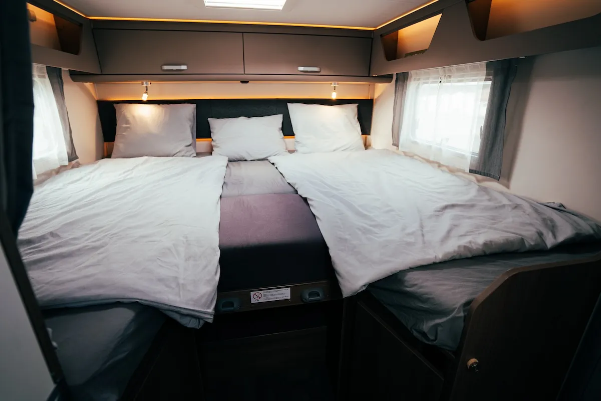 Coral nabízí pohodlné spaní v zadní části vozu a navíc přední stahovací lůžko – ideální řešení pro pohodlný odpočinek na cestách.