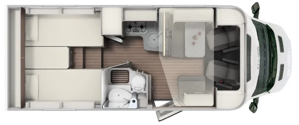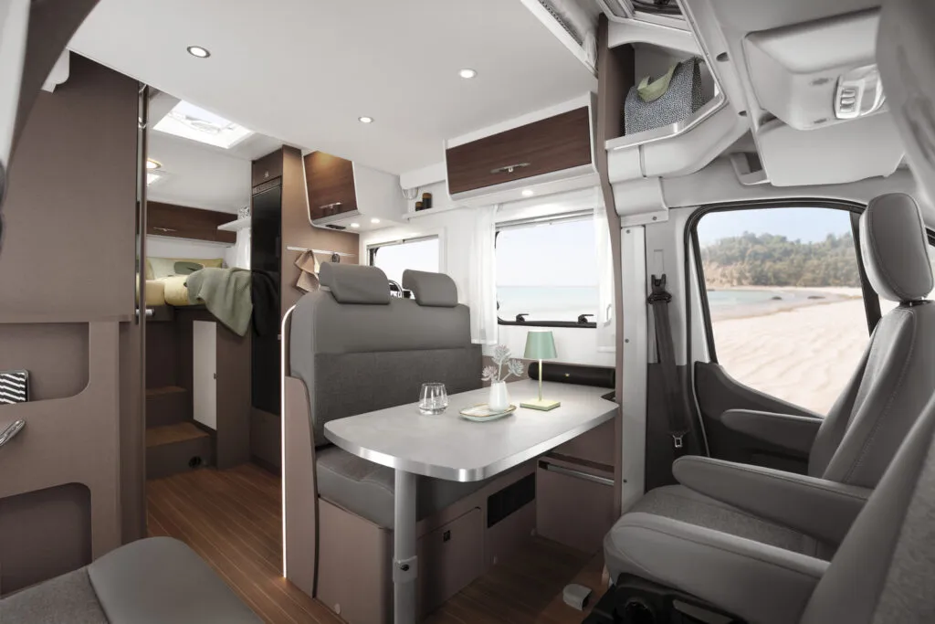 Ventus je obytný polointegrál v pohodovém hnědém provedení a velmi praktickým uspořádáním – je neuvěřitelně prostorný a nabízí spoustu úložného prostoru. Má příjemných 6,98 metru a přitom dokáže nabídnout pohodlné zázemí až 5 lidem! Navíc by byla škoda nezmínit, že na obytné auto se výjimečně dobře řídí.